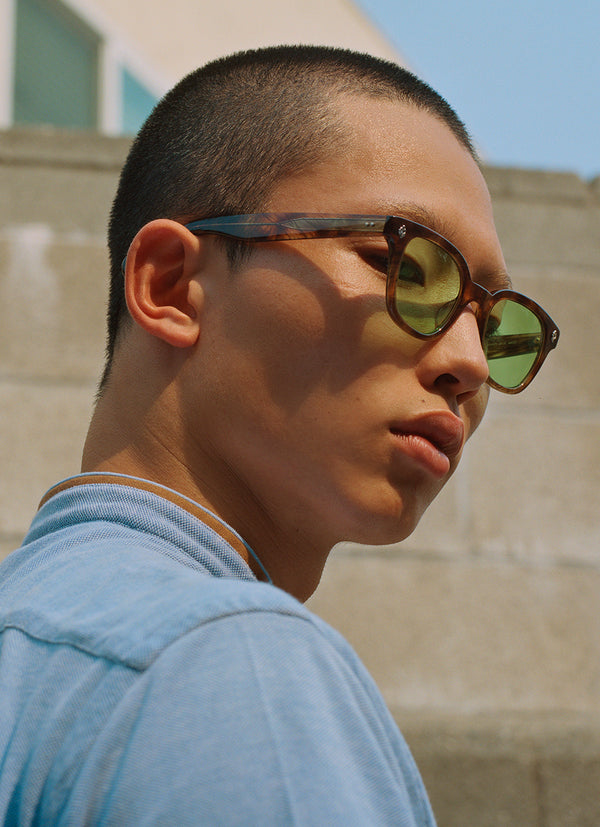 With rich materials and a bold silhouette, the Naples frame infuses a modern design with vintage sensibility. Palm leaf plaques embellish the exaggerated endpieces for a look that's equal parts minimal and striking.