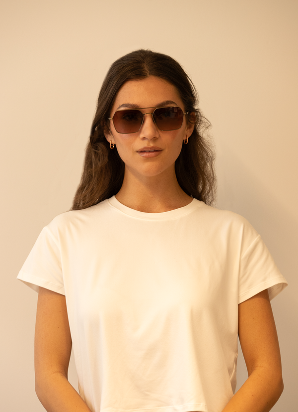 Alta Sun is an oversized, angled aviator crafted entirely from lightweight titanium. Featuring a distinctive double bridge, sculpted end pieces, and clean temple design, it balances bold proportions with precision detailing. Screw-in titanium nose pads provide comfort and stability. 100% UV protection.