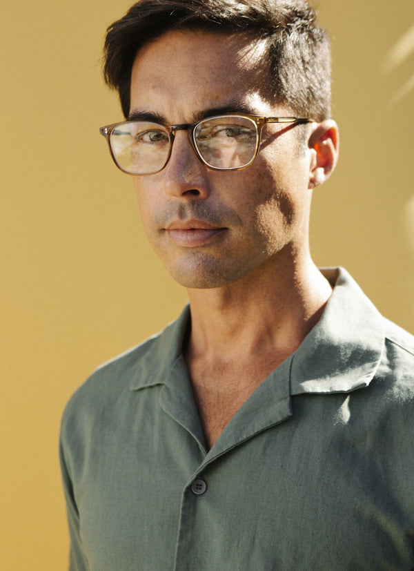 The Boon is a traditional wide, rectangular style eyeglass with semi-rounded rims. These classic frames feature a thin acetate, keyhole bridge for considered comfort, and signature GLCO pins.