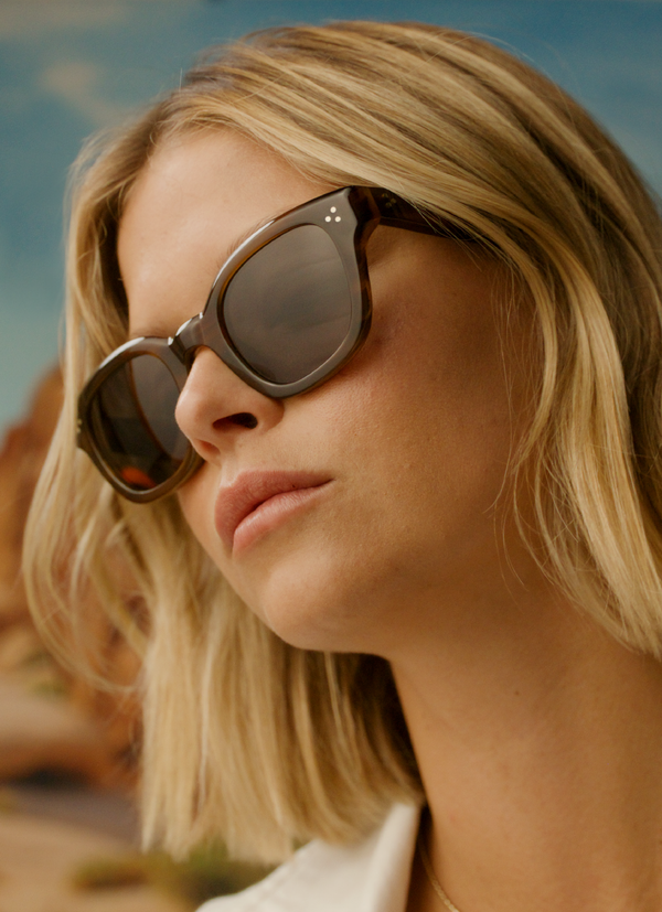 The Cyprus Sun is a modern take on a classic shape. Featuring a bubble-like beveling, vintage browline and a custom Mountain filagree core wire. 100% UV Protection.
