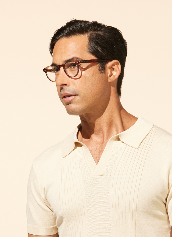 Hercules is a rounded frame with flared end pieces that nods to the signature frames worn by the artists of 60's and 70's. Comfort was carefully considered in the design of this frame, with a keyhole nose bridge and temple design to provide a better distribution of weight. The Hercules is finished with a Skyline plaque and features our custom GLCO Cube filigree corewire.