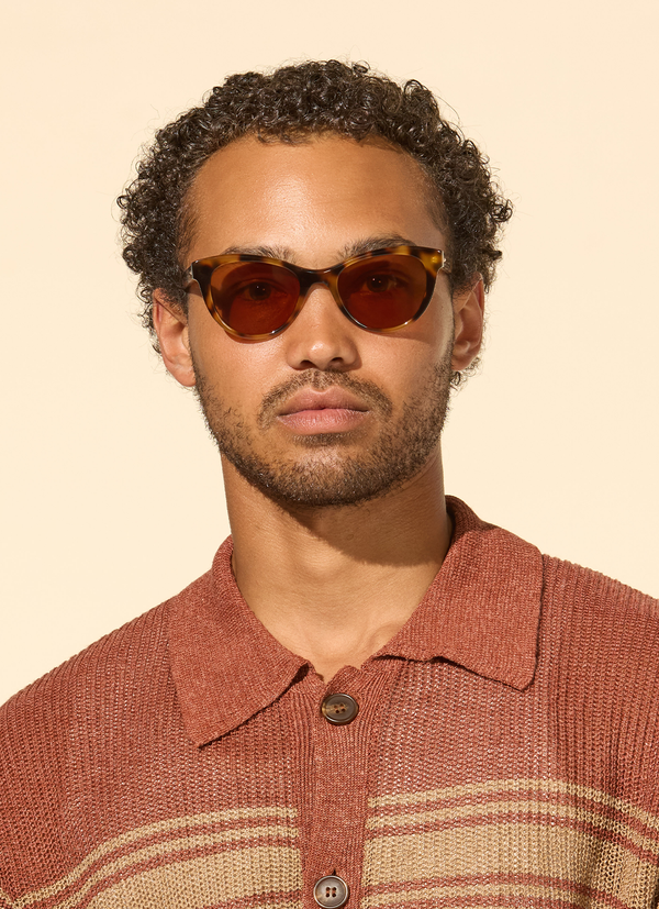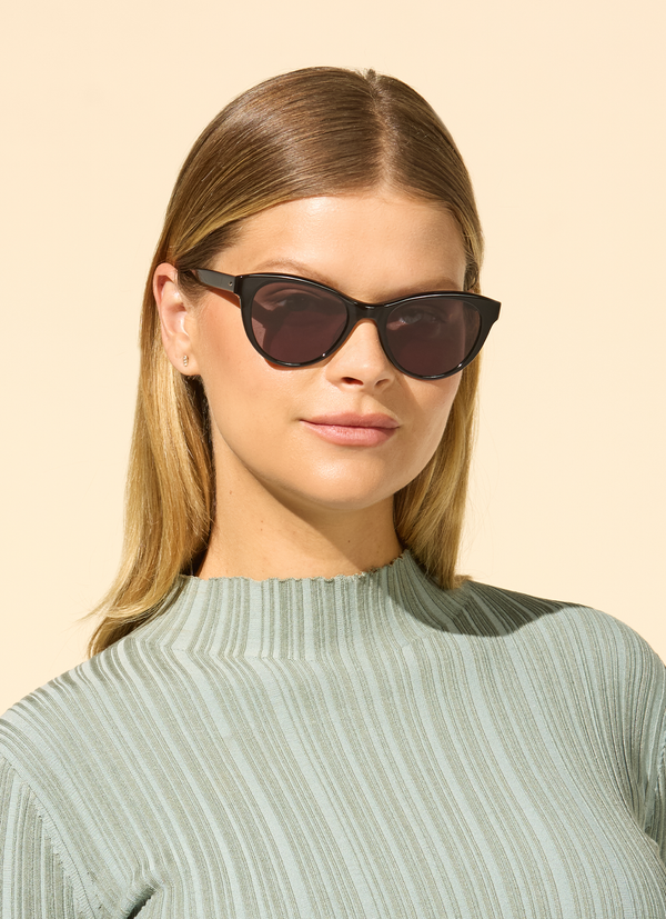 Jess Sun is an oversized cat-eye frame with a bold, upswept silhouette and sculpted browline. Detailed with the Marquis Plaque at the temple and finished with lenses offering 100% UV protection.