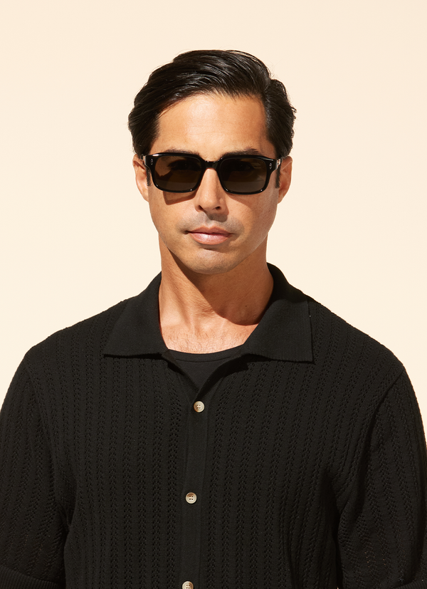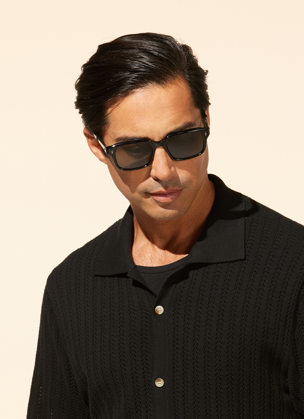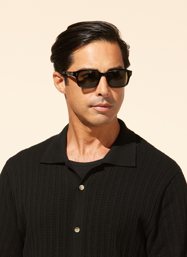Purveyor S boasts a bold, masculine frame with a sculpted, beveled design and a wide rectangular shape that commands attention. It features Cartography core wire filigree and a triple hex plaque on the temples. Equipped with Select Glass lenses and 100% UV protection, this frame combines striking style with exceptional functionality.