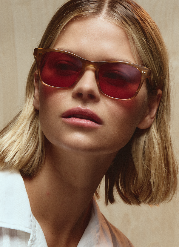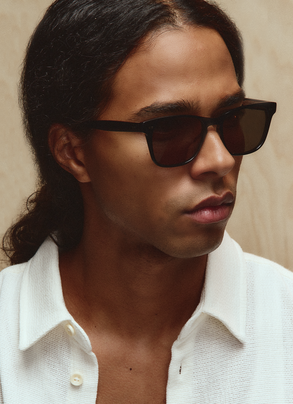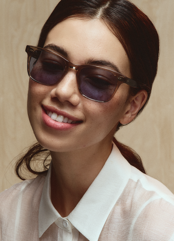 A modern, understated wayfarer designed for a polished look. Torrey Sun features a custom braid filigree core wire, keyhole nose bridge and 100% UV protection.