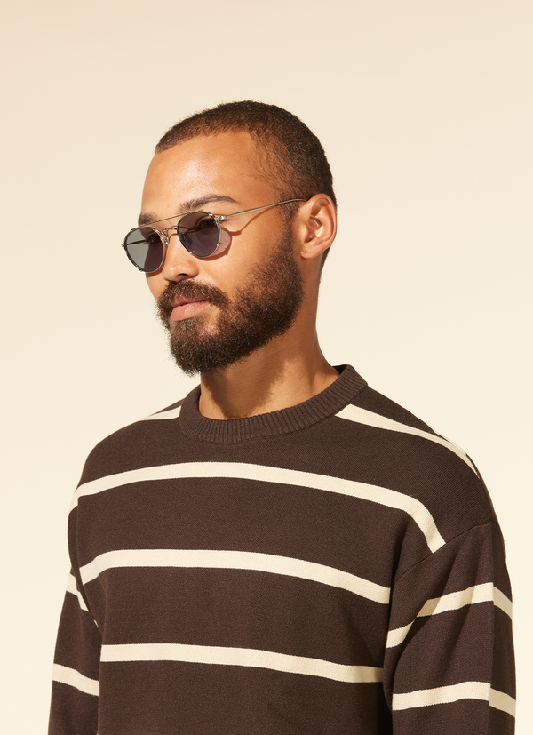 Non-folding lightweight sun clip for our William frames, available in classic color combinations to complement any pairing.